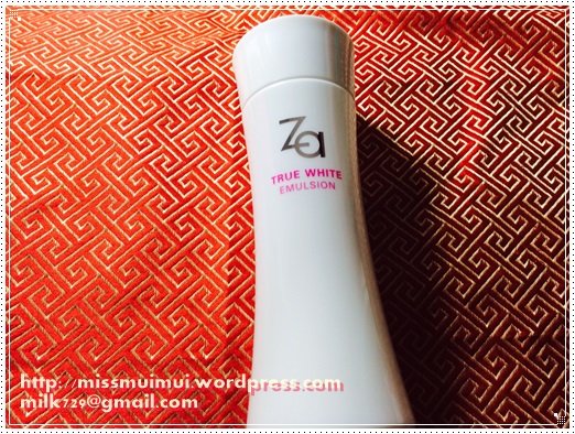 補濕後要加強美白效果,使用Za True White新煥真晢美白乳液(hkd 130/135ml),這是精華露的加強版,同樣地也有高效美白及成分,專利4MSK,維他命C,天然溫泉水、維他命E、百合萃取等,重點美白,使膚色均勻