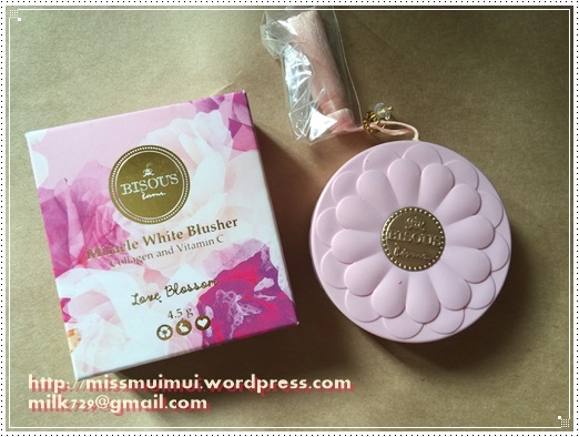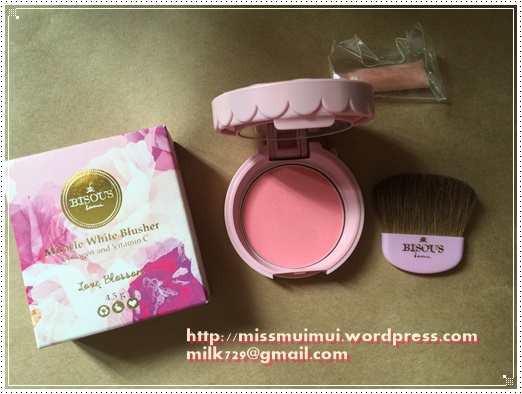 BISOUS 胭脂的掃質量不錯,容易將粉拿起,上色度不錯,淡淡的粉紅色,色澤自然。
