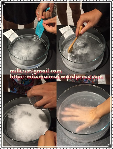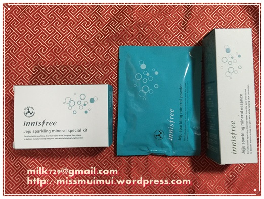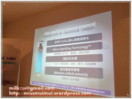 不過,Innisfree 將溫泉水帶到香港,大會立即為大家示範它的Jeju Sparkling Mineral Powder ,就是將山房山的溫泉水變成粉質,所以我不用等下次去韓國才可以試﹗