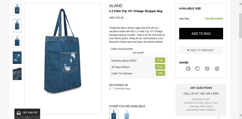 ALAND 除了售賣衣服外,還有配飾,TOTE BAG ,清楚顯示還有淺藍色。實在太方便了﹗現在中文網也有韓國品牌的服裝,ZALORA 真是走國際化了﹗