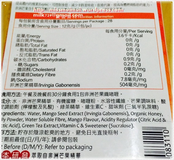 重要的是,非洲芒果纖啫喱的成分有大學權威支持 http://www.lipidworld.com/content/8/1/7 ,所以食用很放心,而且是有效的。