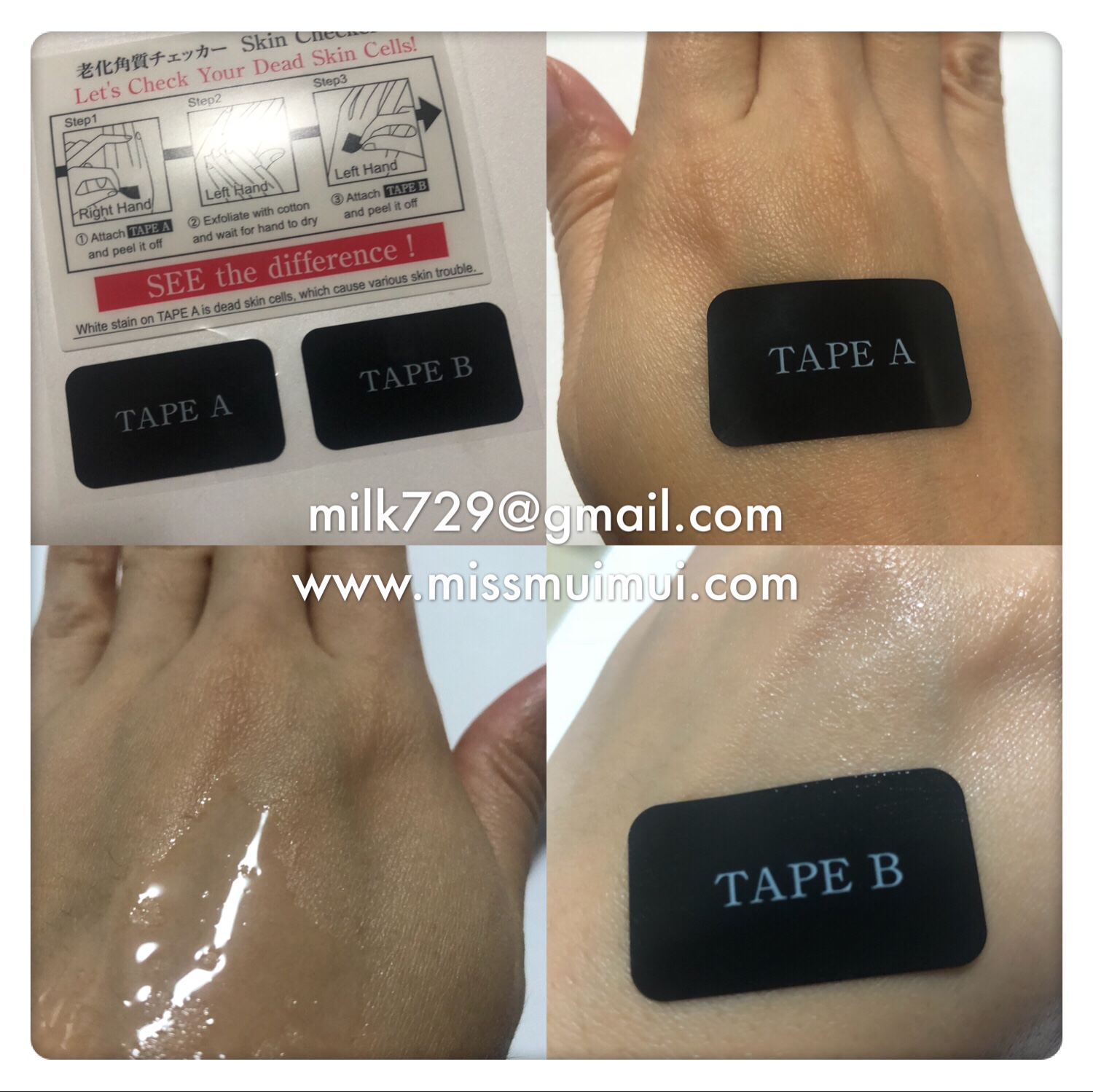 細心一看,嘩,TYPE A 很明顯的看見肌膚紋路,有些角質層被黏出來,反而使用了紅石榴花萃去角質化妝水的TYPE B ,肌膚的角質層已除去,十分利害﹗