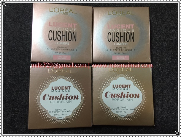 LOREAL PARIS 今次推出了兩款粉底,分別為LUCENT MAGIQUE 光透水潤氣墊粉底 (圖上,建議零售價: $199)和LUCENT MAGIQUE 陶瓷光感氣墊粉底 (圖下,建議零售價: $199)